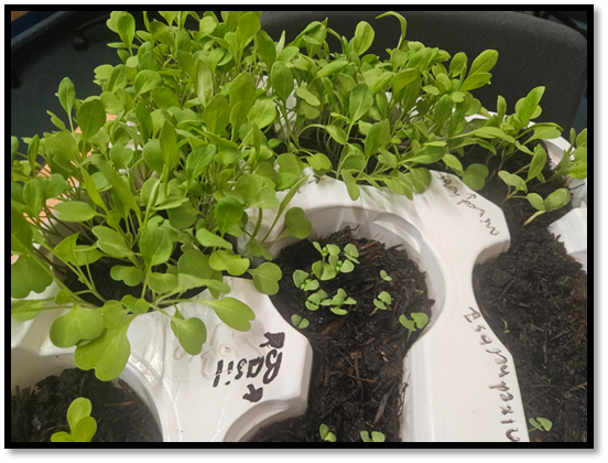Eco-Committee Gardening update We have a range of seeds that have been planted and growing in a greenhouse for the past 6 weeks. Now they have sprouted into seedlings. We enjoyed giving our parents the opportunity to see the seedlings before they are planted in our school garden.