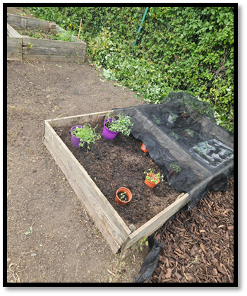 Eco-Committee Gardening update Our Eco-Committee and members of their class spent time in the school garden. The children worked well as a team to clear the weeds before laying membrane and bark down. They filled up the planters with compost and started to plan where the seedlings should be planted. |