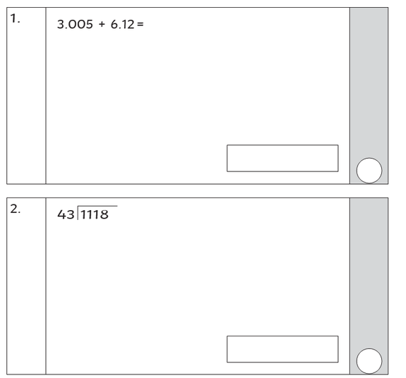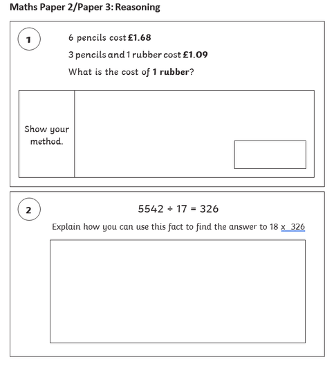 Paper 1 is for arithmetic lasting for 30 minutes, covering calculation methods for all operations, including use of fractions, percentages and decimals.